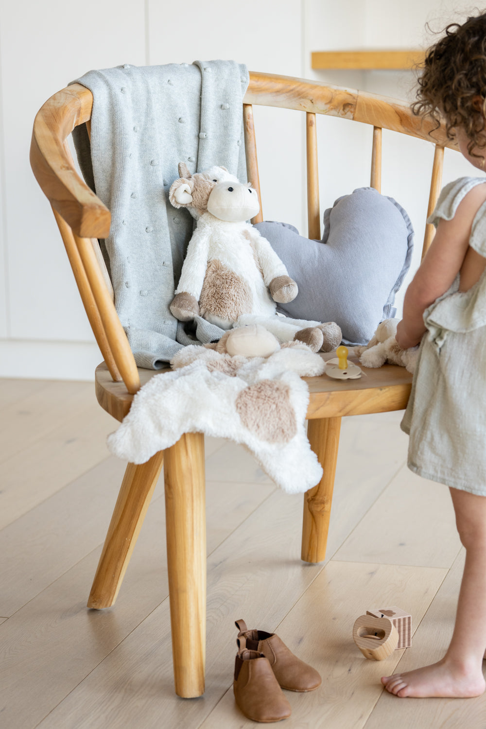Clover the cow likes a chat. She's a bit of a gossip in fact. Always up with the latest news from the paddock, Clover's got the low down from the bull's side of the fence too. This soft and snuggly patchwork cow can't wait to give you her precious friendship & all her juicy secrets!